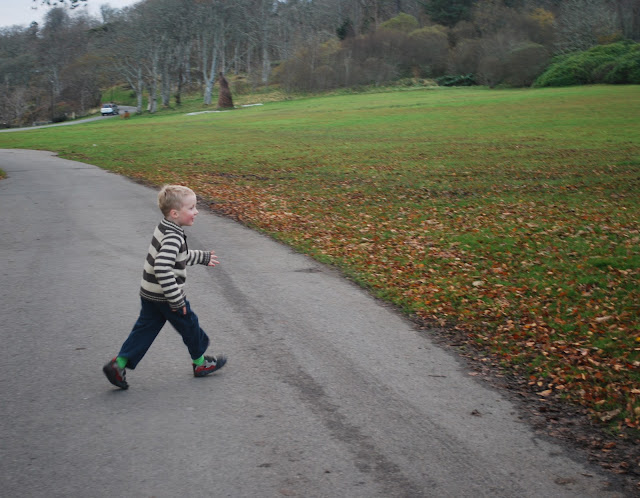 But not for long - a few minutes later, he was laughing and playing in the woodland park.